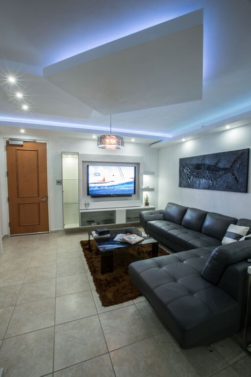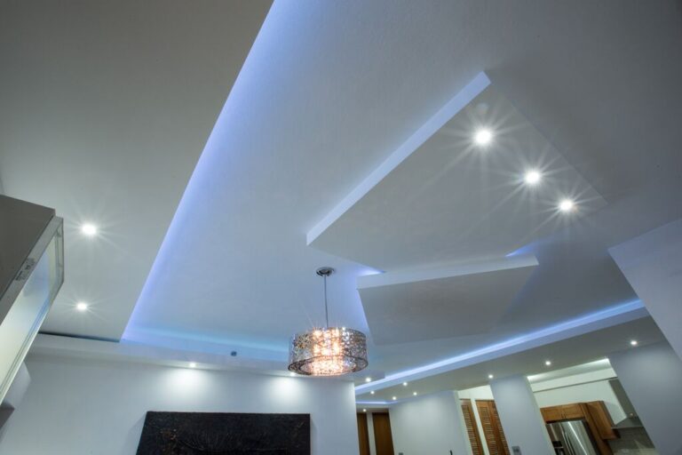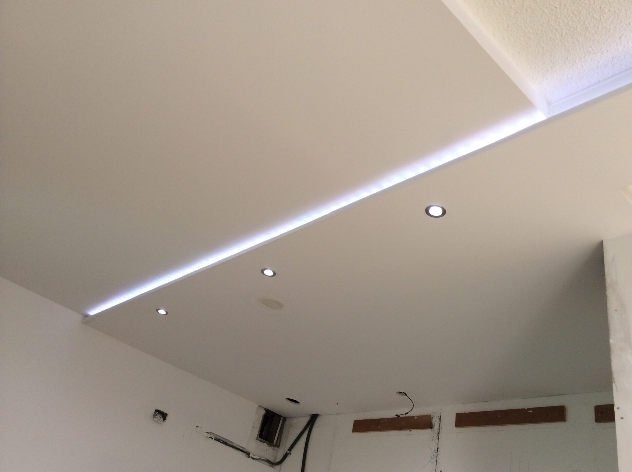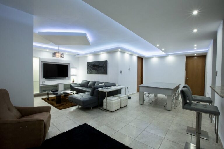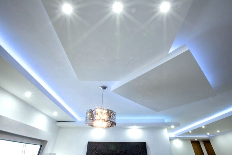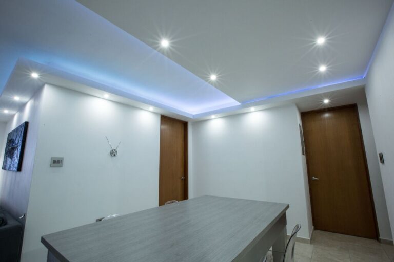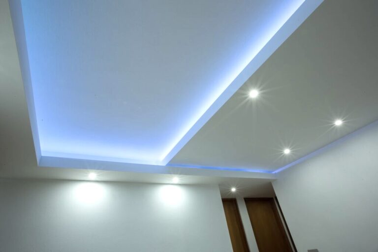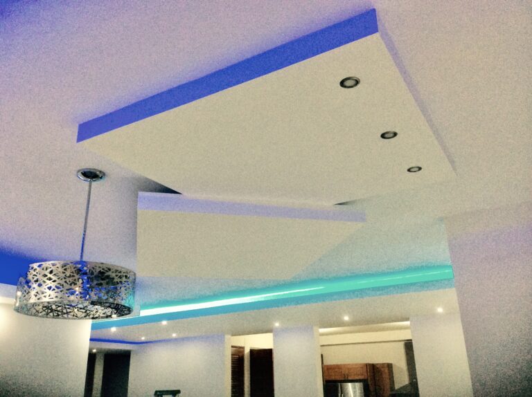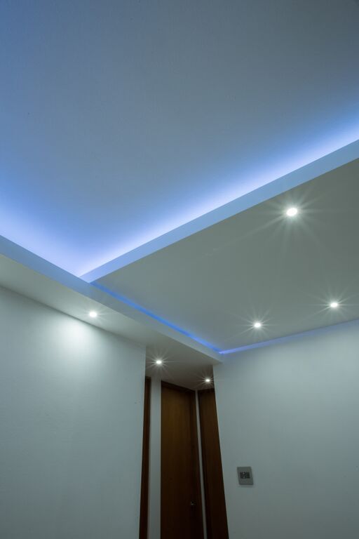 Facia en los bordes y en el centro flotante con luz azul