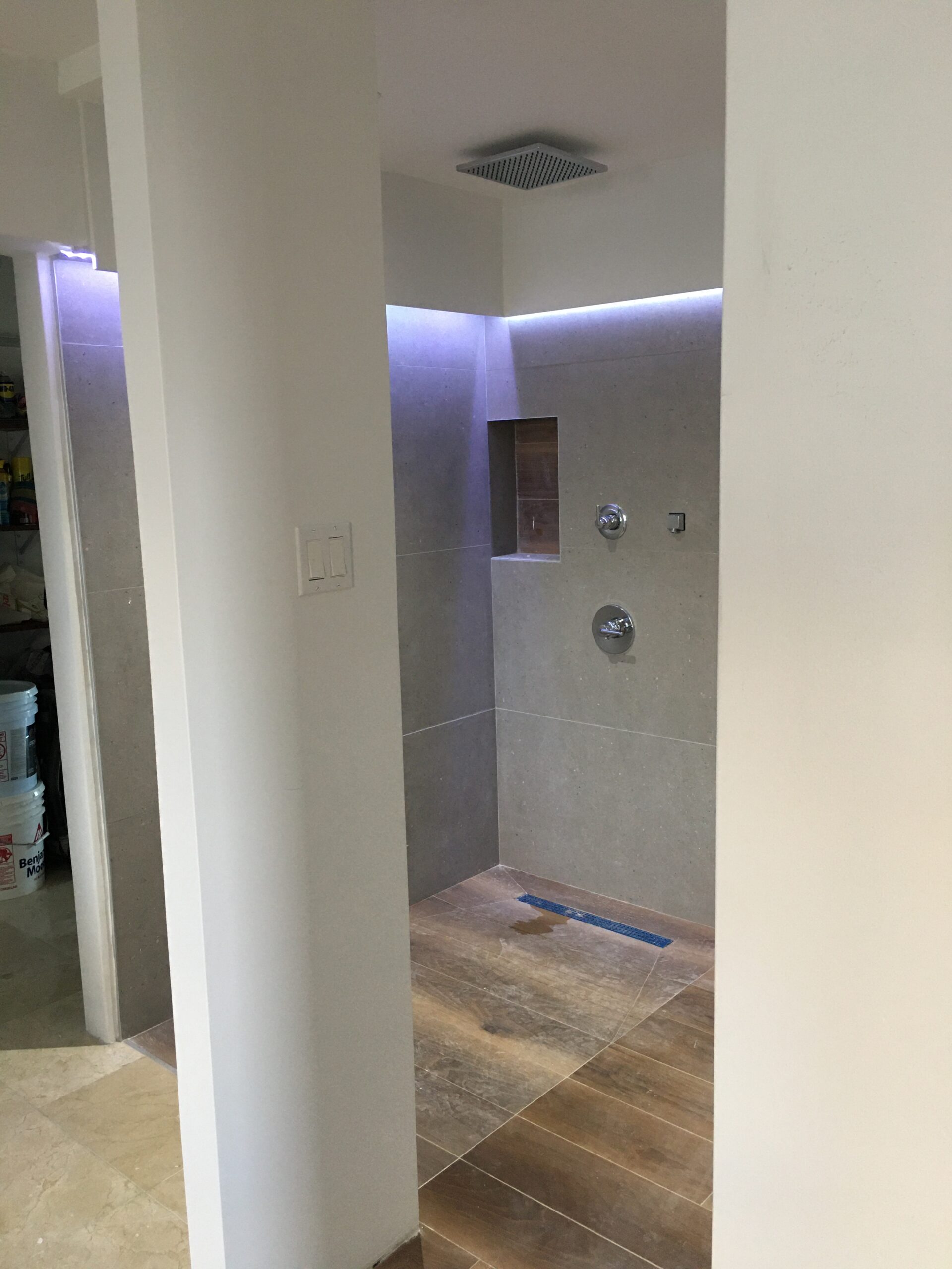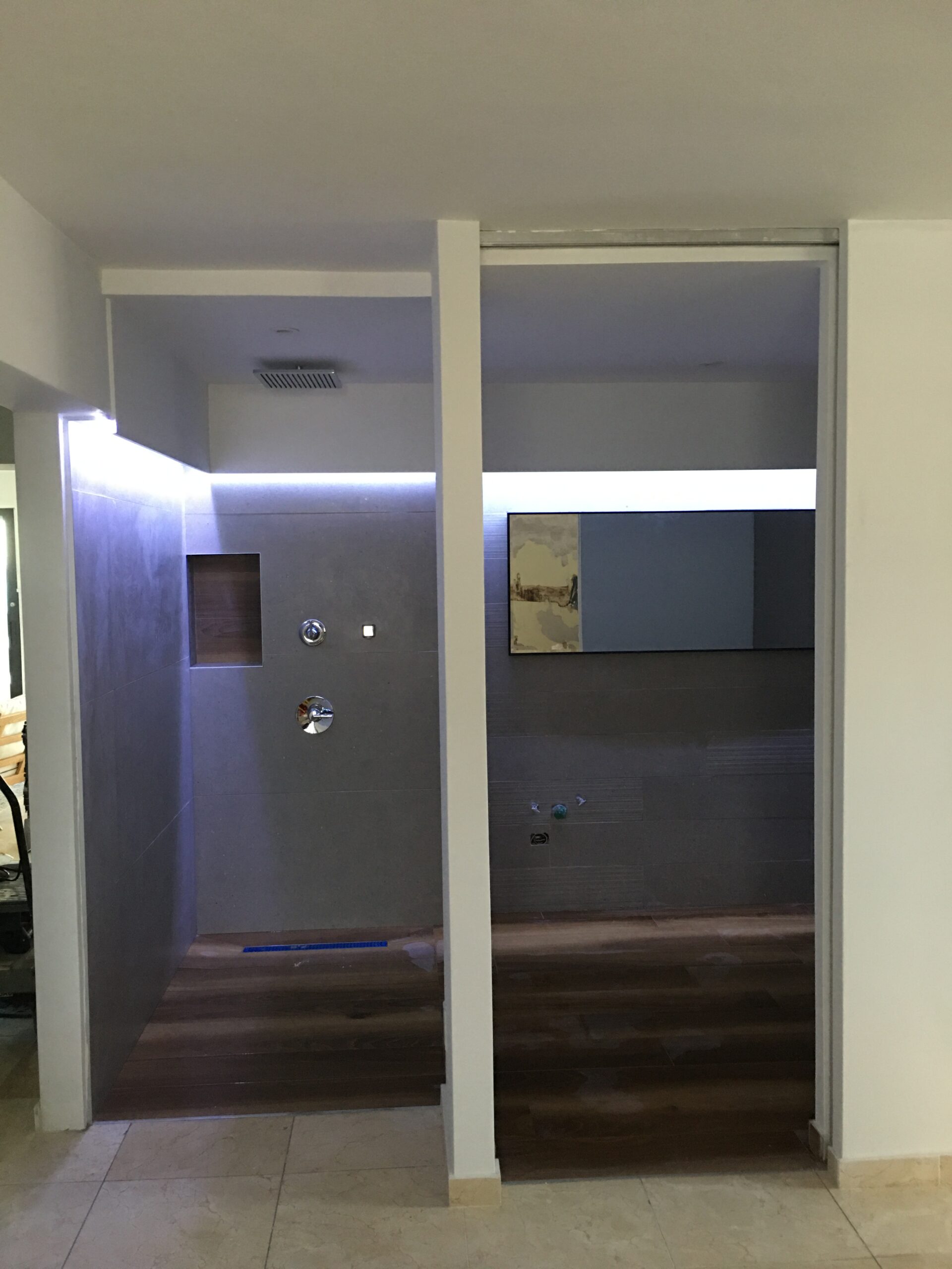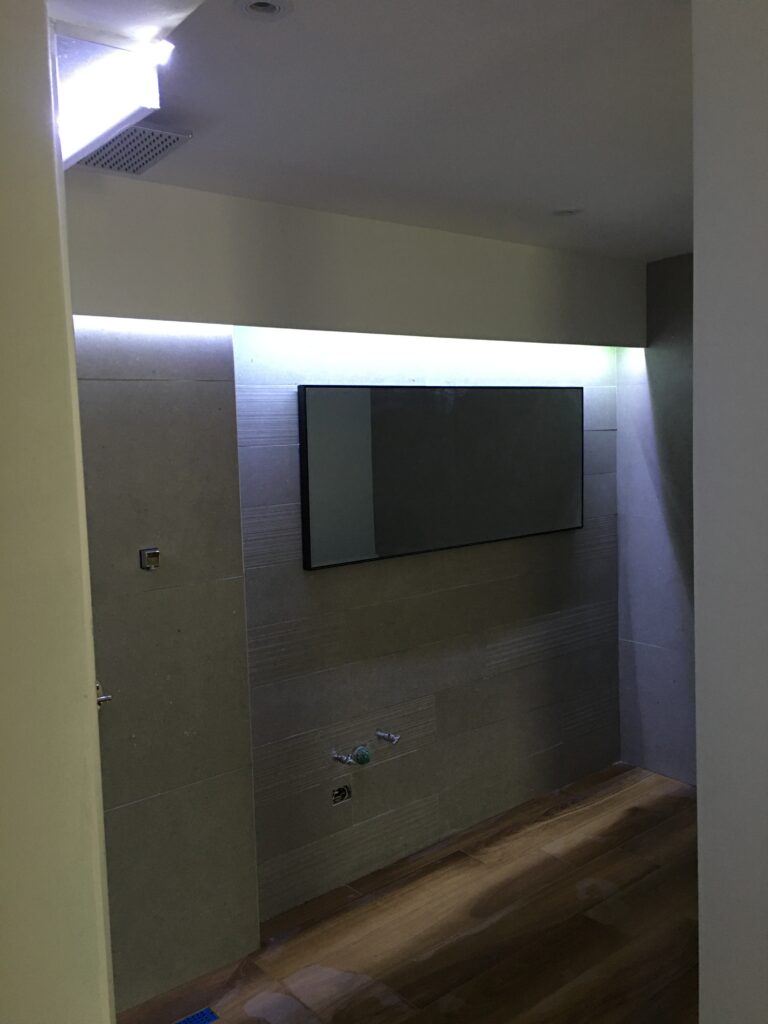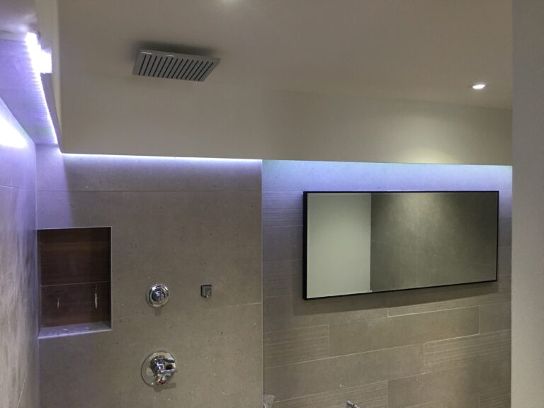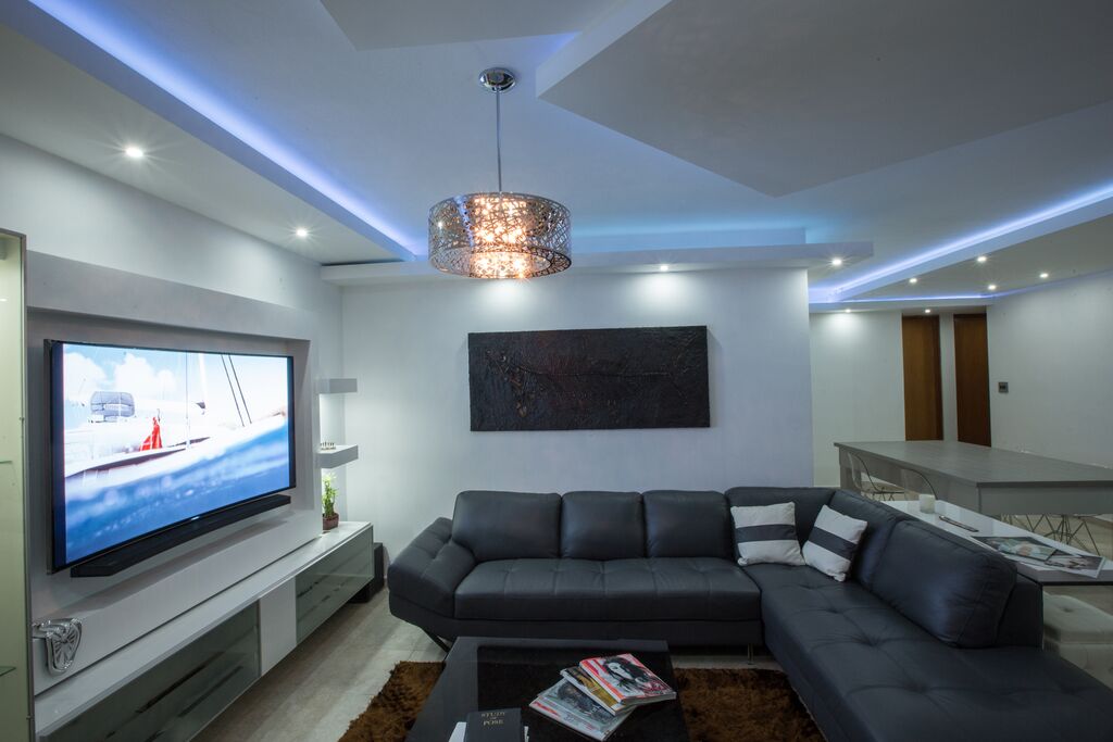Facia en los bordes y en el centro flotante con luz azul