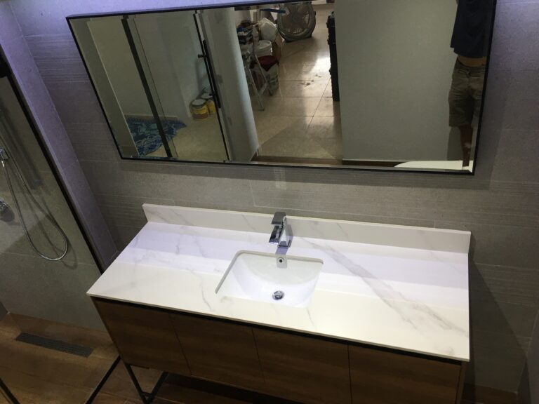 Vanity con tope blanco en cuarzo